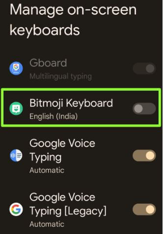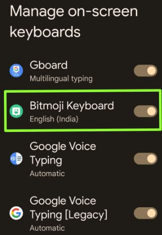 Step 8: Toggle on the Bitmoji keyboard.