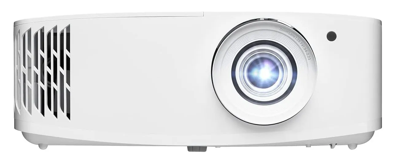 Standard throw projector (100” at 8.2 ft) with 4K resolution, 10000:1 image contrast ratio, and 3000 ANSI lumens brightness. For gamers, it has a low latency of 16m/s at 4K/60Hz. It also has 1.2x zoom, 2D auto vertical keystone, and picture rotation adjustment. It is compatible with AirPlay and Google Chromecast, and download the apps from the Google Play Store.