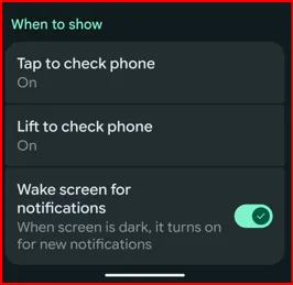 To enable/disable Lift to Check phone, go to Settings > Display & touch > Lock screen > Lift to check phone (Pick up your phone to view AOD info)
