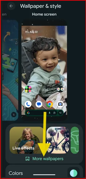 You can see pre-installed wallpapers. Tap on “More wallpapers”