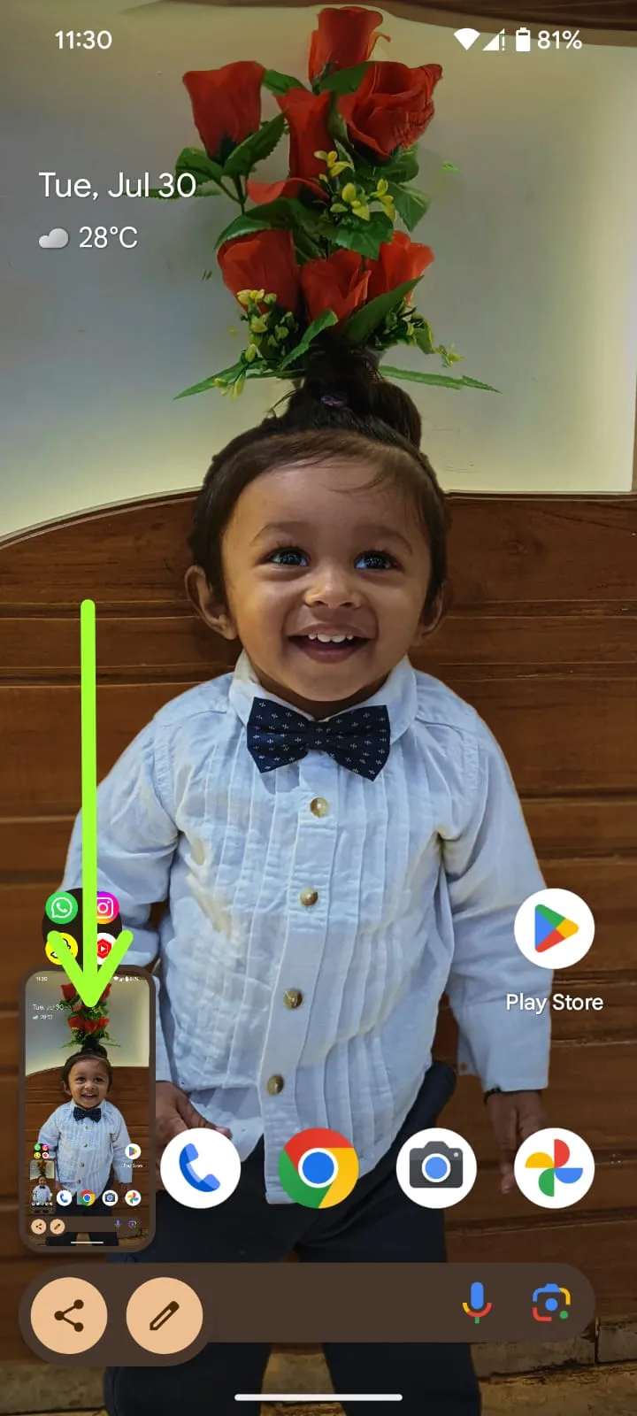 Step 3: You can see the screenshot taken on your phone’s bottom left screen. Also, find that screenshot in your phone gallery. Share or edit the screenshot you want.
