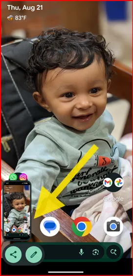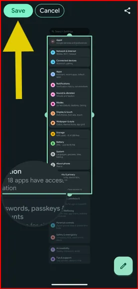Preview Options: You can see the “Share,” “Edit,” “Up & down arrow (Android 16)”, or “Capture more” for scrolling screenshots on Google Pixel devices.