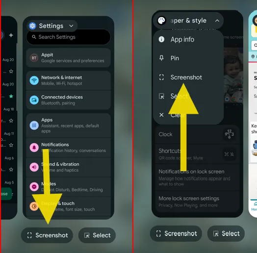 Two methods are available to capture a screenshot using the recent apps screen on the latest Pixel devices.