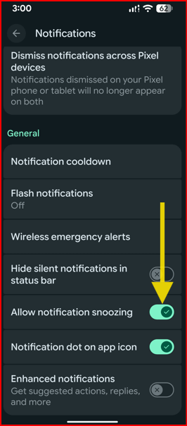 How to Allow Notification Snoozing on Google Pixel 9 Pro XL