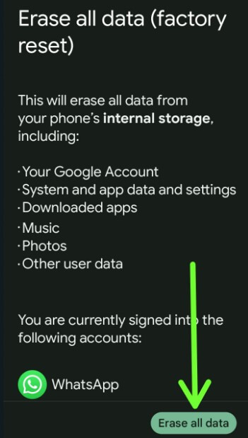 Step 4: Tap Erase all data (Factory reset).