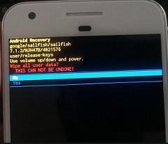 This message view on your Google Pixel XL screen: Wipe all user data?